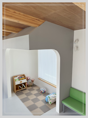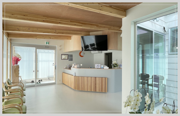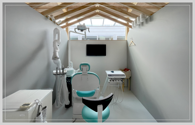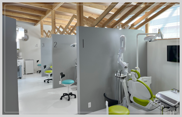4つのブースにそれぞれ屋根がついています。診療中見上げた天井に照明が一切ないので、木の温もりを感じることができます。